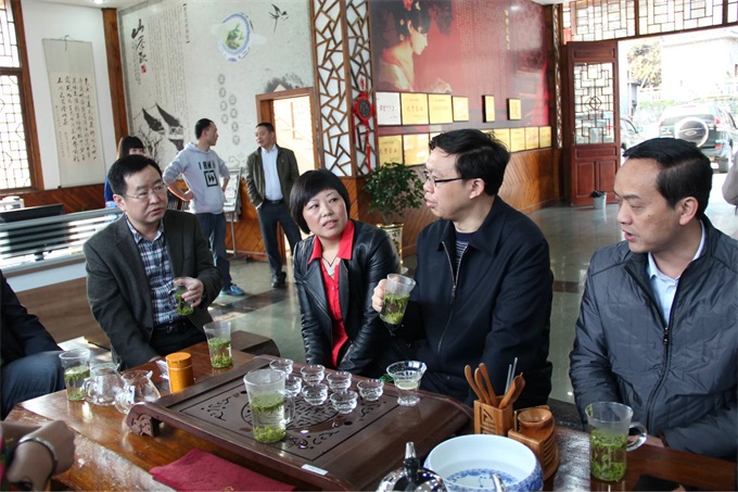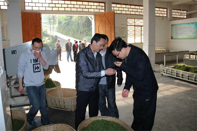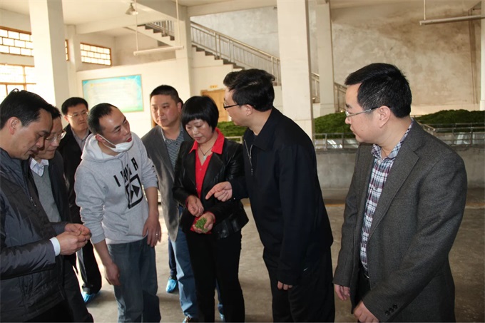 2014年4月3日,阳光明媚,清江河畔花枝茶楼一片欢声笑语。由恩施州委王书记、李市长、向书记等一行领导,驱车到花枝茶公司走访、察看春茶生产加工、销售情况,特别是对九游老哥J9俱乐部官网专业合作社进行的深入细致地了解,对花枝茶公司经营模式,带领农民共同发展经济,保障茶农利益给予了充分肯定。最后州委王书记品尝花枝茶后,风趣地说:这杯茶好,我用自己的杯中带走了............
