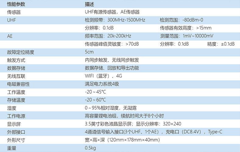 仪器支持3通道特高频(UHF)和1通道超声波(AE)局部放电检测模式,能够同时实现局放巡检和故障定位功能,快速诊断缺陷性质,有效评估GIS设备运行状态。