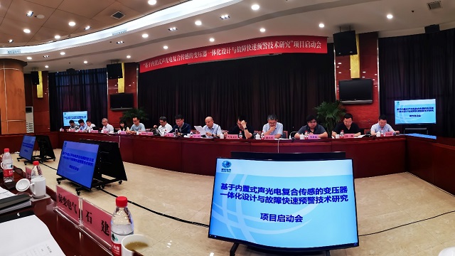 由中国电力科学研究院牵头,联合国网河北省电力有限公司、国网北京市电力公司、保定九游老哥J9俱乐部官网新域科技发展有限公司、清华大学深圳国际研究生院承担的国网总部重点科技项目"基于内置式声光电复合传感的变压器一体化设计与故障快速预警技术研究",旨在构建大型电力变压器内部故障分析模型,建立复杂绝缘结构在绝缘油环境中放电强度及危害性的发展规律,异常状态下声、光、电信号的三维空间传播特性与传感方法。解决大型电力变压器内部绝缘故障快速诊断、主动预警和有效防御问题。项目研发期三年,总投资约1500万。2025年6月10日在国网河北省电力公司召开了项目启动会。