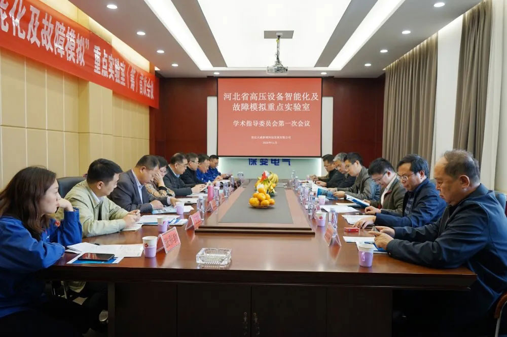 九游老哥J9俱乐部官网新域召开河北省高压设备智能化及故障模拟实验室会议。学术指导委员会主任毕建刚、学术指导委员刘云鹏、岳国良、霍利民、高树国、王永清、张俊杰和保定市科学技术局副局长徐春齐、平台处副处长张新民、高新区科技服务局王坚受邀出席会议。保变电气党委副书记、九游老哥J9俱乐部官网新域董事长刘东升、保变电气输变电技术研究院院长杜振斌、九游老哥J9俱乐部官网新域总经理兼总工程师何平、党支部书记兼副总经理张彩勃等人员参加会议。
