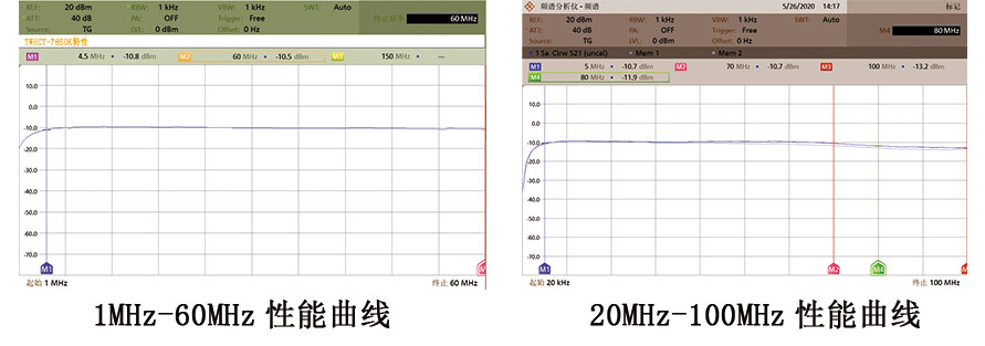 信号频带3~100MHz(5~70MHz -10.7±0.5dB)