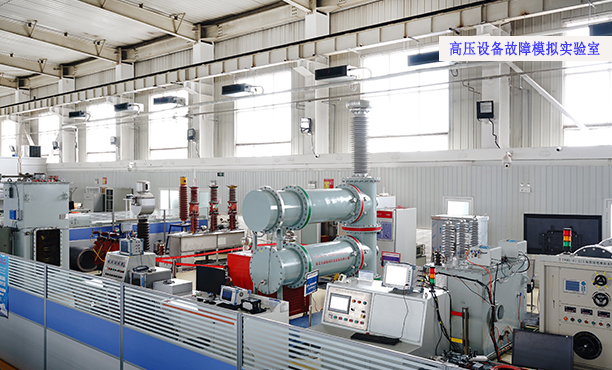 高压设备故障模拟试验室装备有变压器、有载分接开关、GIS、断路器、开关柜、电缆等各种高压设备的真实设备模型,可模拟其内部产生的各类绝缘故障,包括变压器的内部放电故障、过热故障和绕组变形故障、GIS和开关柜的内部各类放电故障等,验证各种状态检测传感器、检测方法及检测仪器的性能和有效性,放电性质分析和定位的准确性,带电检测、状态评估方法的可用性。装备的全封闭油浸式高压设备绝缘材料综合试验系统,对油中绝缘材料的老化、耐压、局部放电、相容性进行综合试验和验证。该系统能够真实模拟油浸式高压电气设备运行中的内部磁场、高压电场以及变化的温度场,并在此环境下对多种油中绝缘材料(光纤传感器、绝缘纸板等)进行老化、耐压、局部放电试验。
