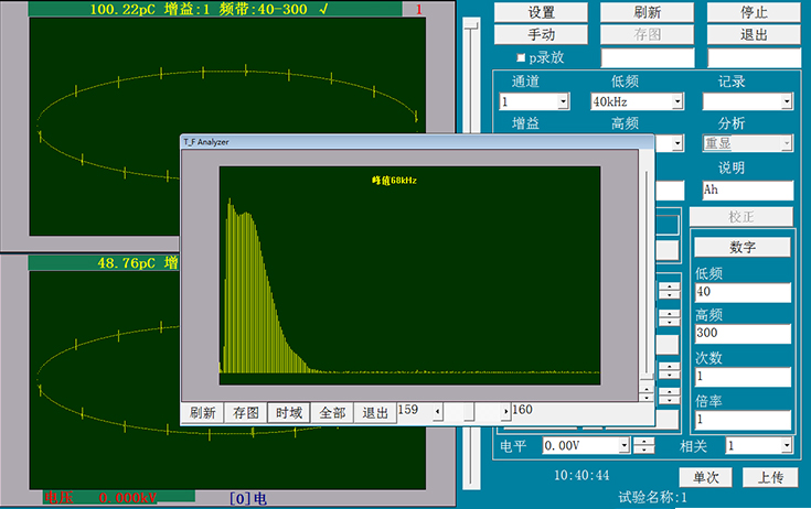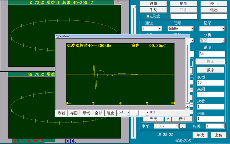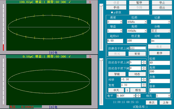 两通道独立采集数据(非通道转换式),同步信号采样,两个窗口单独显示局放测量结果。