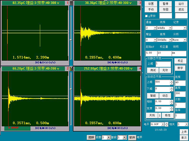 四通道高速同步采集,准确捕捉放电信号,可捕捉偶发性单脉冲信号。